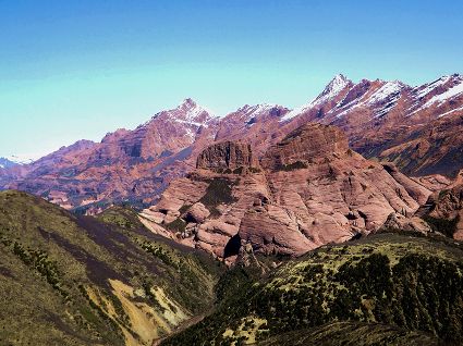 位于四川省西部雅礱江河谷的新龍紅山丹霞地貌被稱為“雅礱秘境”“地之肚臍”,該丹霞地貌正處于壯年期,整體海拔大多在4200米—5000米之間,超過5000米的山峰有10余座,高差大于800米,屬于典型的高寒型丹霞。