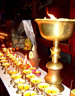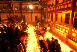 傳說藏歷十月二十五日,是藏傳佛教格魯巴(俗稱黃教)創(chuàng)始人宗喀巴大師圓寂成佛的日子。為了紀念這位杰出的宗教領(lǐng)袖,藏區(qū)各黃教寺廟和信徒于藏歷十月二十五日,舉行誦經(jīng)、磕頭,燈供儀式等隆重的祭祀活動,祭祀宗喀巴大師在天之靈和祈愿大師賜與善良的人們以吉祥幸福。