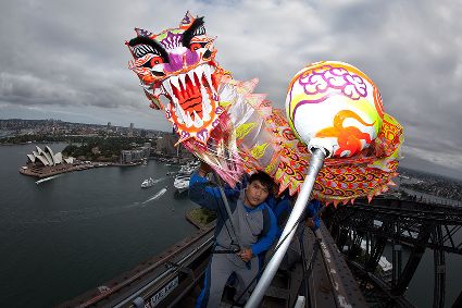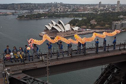 中國傳統(tǒng)舞龍亮相悉尼海港大橋