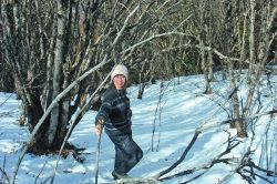 在馬鞍山頂?shù)谋泵婕氨逼?,有一片望不到邊際的樹林。冬天的這片樹林,呈成熟而貴氣的暗褐色,葉落枝出,紛亂、素凈、蕭瑟、清貴。于是,以雪地和樹林作背景,也照了不少相。