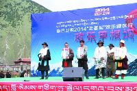 上午十點(diǎn)半,隨著一陣歡快的音樂聲,康巴衛(wèi)視2014年“走基層”歡樂藏區(qū)行活動(dòng)在甲根壩鄉(xiāng)木雅村正式拉開序幕。
