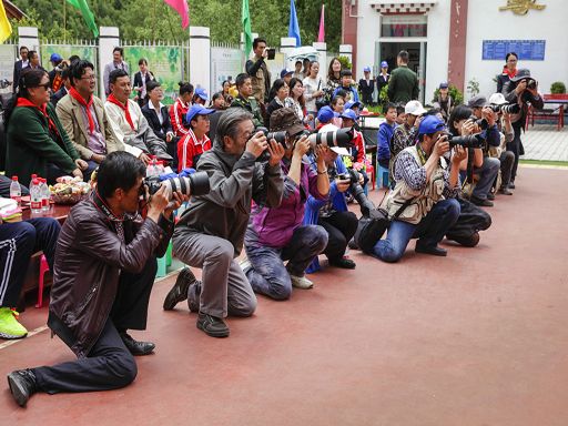 一張“全家福”,道出了攝影家們與老師和孩子們親如一家的關(guān)系。