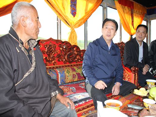 黃新初在甘孜縣拖壩鄉(xiāng)拖壩村了解當?shù)厝罕姷纳a(chǎn)、生活情況。
