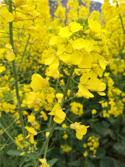 油菜花是我兒時的記憶,外婆為了生計(jì),總會在家門口的幾畝菜地里滿滿當(dāng)當(dāng)?shù)姆N上油菜,菜花開的時候,我就會端上一根長板凳、一根方板凳坐在油菜花前寫作業(yè),油菜花的清香伴我度過了整個童年。記得兒時,每逢春季,田野里都會被一簇一簇的油菜花裝扮的金黃,大片的花兒披著一層金裝,偶爾一陣清風(fēng),大地上便掀起了片片的漣漪,烈陽下金光燦燦,甚是好看!