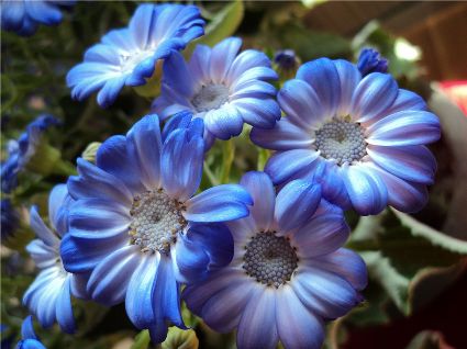 第一次在花藝市場看見這盆花的時候,便被她像極了向日葵的外表所吸引,更為她憂郁的藍(lán)色所吸引。對瓜葉菊的喜愛源于對向日葵的鐘情,而向日葵卻是我心中無法抹去的情愫。