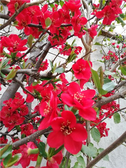 父母居住在瀘定,小區(qū)院子里,被愛花的老人家們種滿了三角梅,有很多顏色,紫、紅、玫紅各不相同。也記不起是什么時候隨手掰了幾根,插在家里閑置的花盆中,隨意放在陽臺上,也沒有太多用心的去搭理,它卻頑強(qiáng)的活了過來,不單活了,還攀附在陽臺的防護(hù)欄上,越長越高。每每看到它,一樹一樹,連葉子都沒有,竟然就繁花滿枝,開得不管不顧,心里無限的感慨。傾城的梅,傾城的美,仿佛在對世人說:我就要這樣,刪繁就簡,不拖泥帶水,直奔開花。