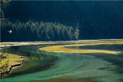 因?yàn)榭刀ǖ奶鞖?,就算?dāng)?shù)厝艘沧聊ゲ煌?,有時(shí)天空正暖陽(yáng)高照,忽的便下起小雨;有時(shí)陰云密布,但轉(zhuǎn)眼便是風(fēng)和日麗;霧總是那樣飄忽不定,時(shí)常在山間聚散游走;風(fēng)永遠(yuǎn)是那么剛?cè)岵?jì),經(jīng)常在河邊回旋嬉戲……陰晴冷暖,風(fēng)雨霧雪,在這里,天氣的變化是那么隨意自由,多少有點(diǎn)肆無(wú)忌憚,總之一切的一切都是謎,這一刻的你決然猜不出下一刻的天氣。
