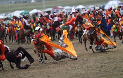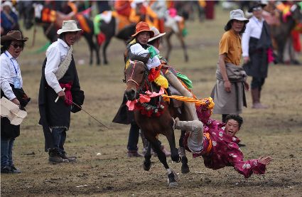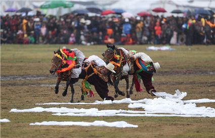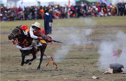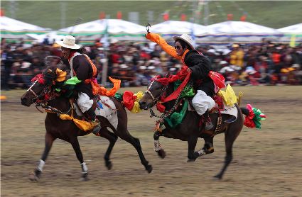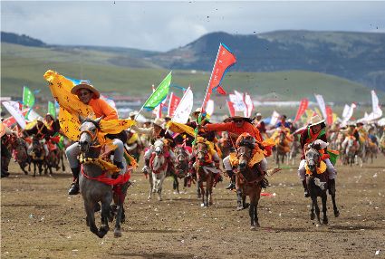 近日,在理塘縣奔戈鄉(xiāng)薩戈村八一賽馬場,來自全縣各鄉(xiāng)鎮(zhèn)近千名牧民進行了傳統(tǒng)的馬術表演,他們以高超的騎術展演了拾哈達、馬上射擊、馬上射箭、鐙里藏身、五彩凌空等馬術技巧,把歡樂帶到草原,讓當地牧民和眾多游客享受了一場視覺盛宴。