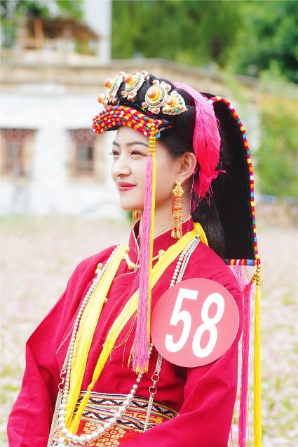 比賽開始不久,現(xiàn)場(chǎng)下起了小雨,但絲毫沒有影響熱烈氣氛。臺(tái)上的佳麗們,略施粉黛,穿著承載著嘉絨風(fēng)情文化的民族盛裝,自我介紹,優(yōu)雅展示。臺(tái)下,則是鄉(xiāng)民齊聚,熱情高漲。大家紛紛到場(chǎng),為佳麗們加油助威。據(jù)介紹,丹巴出美女始于漢代的東女國(guó)時(shí)期。古時(shí)每年農(nóng)作物收獲的時(shí)節(jié),丹巴各村各寨都要舉行盛大的選美和祭祀活動(dòng)。