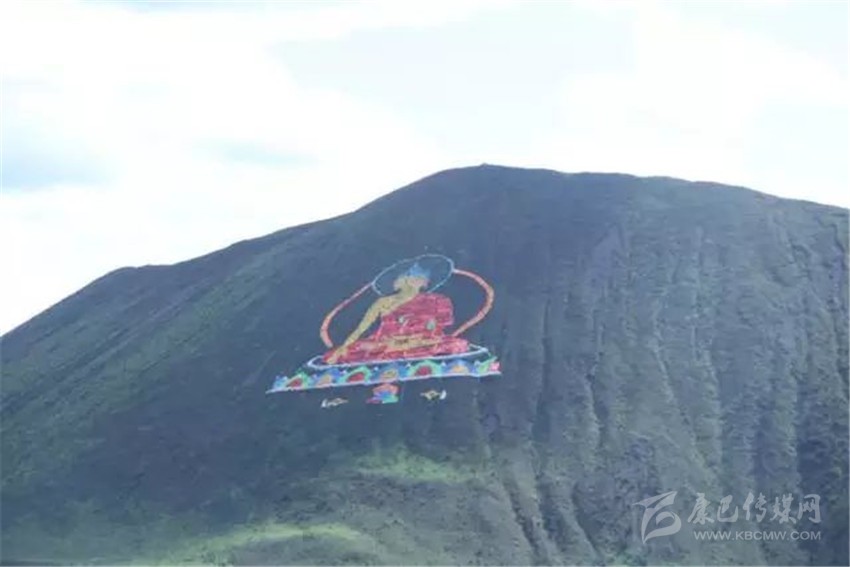 看,佛主正在向我們微笑,這尊巨大的佛像是由然梯寺的活佛使用4萬(wàn)根經(jīng)幡,在沒(méi)有使用任何輔助工具的情況下花費(fèi)一個(gè)月的時(shí)間創(chuàng)作而成。每當(dāng)風(fēng)吹過(guò),大佛就會(huì)隨風(fēng)飄舞。就如同在向四面八方散發(fā)佛光一樣。