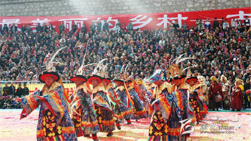 十七世紀時,丹巴巴底大坪村阿洛、益西降稱等喇嘛去西藏學經(jīng),求學期間,征行九世班禪同意在日喀則扎什倫布寺學習藏戲,學了《呷拉翁布》(另名《卓瓦桑姆》)和《甲扎共龔》(譯為《文成公主》)二劇的唱腔、鼓鈸奏法、表演技巧,帶回巴底黃金寺,挑選寺中30余名僧徒成立黃金寺藏戲團。此后,每年都在規(guī)定時間演出。丹巴中路藏戲,是中路寺廟喇嘛去西藏學經(jīng)時帶回的。