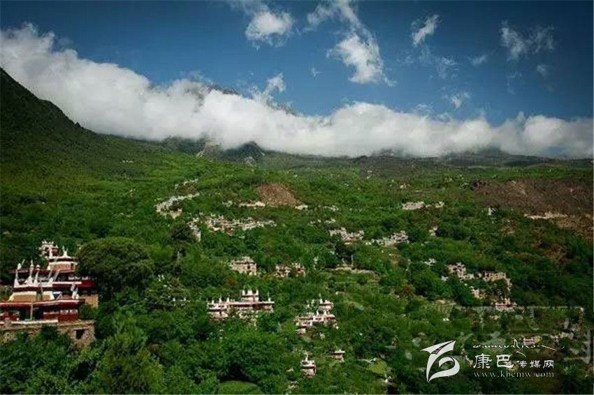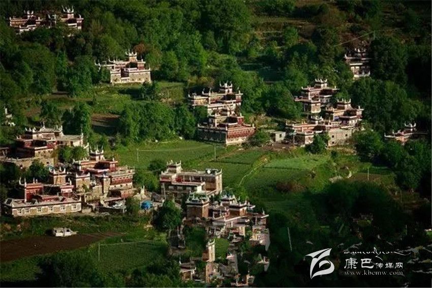遠遠看去,充滿靈氣的山谷中,翡翠般的青草綠樹之中,是那沉甸甸的田地和隱在密林深處的寨房,伴著時有時無的潺潺溪流,一幅富有動感的絕妙山寨畫卷隨之展示在你的眼前。山寨依山面水,周圍綠樹掩映,藏寨從大金河谷層層疊疊向上攀沿,錯落有致的散布在山坡上,一直延伸到卡帕瑪群峰峰的腳下,非常的漂亮。