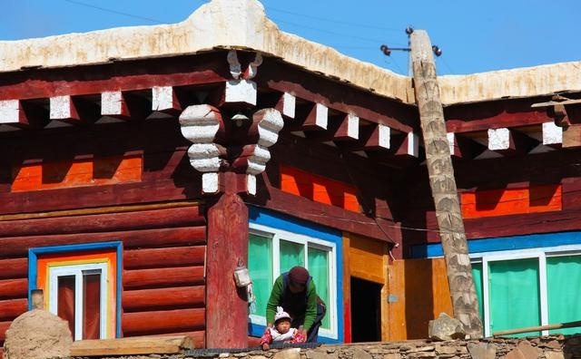 民居的基礎多為長方形,二樓呈L型、凹型或回型。建筑的內(nèi)層結構均以木材料為唯一的建筑材料。整座房屋用“棒柯”、“棒勒”裝修成主人或客人的臥室、儲藏室、經(jīng)堂、客廳(有的分設漢式和藏式兩廳)、廚房、走廊、陽臺、廁所。陽臺外圍墻上均建小型熏煙臺,屋頂有頂幡塔。頂蓋用樺樹皮或硬雜木條墊底,再鋪“阿嘎土”而成,日曬雨淋絕不漏水,經(jīng)久耐用。屋架門窗外表裸露部分,多以油漆或自制有色土染色,做到防腐防蛀美觀大方。一般而言,道孚民居的大框架,費不了多少工時。當建房的材料備齊后,主人就請喇嘛打卦,擇一良辰吉日動工。