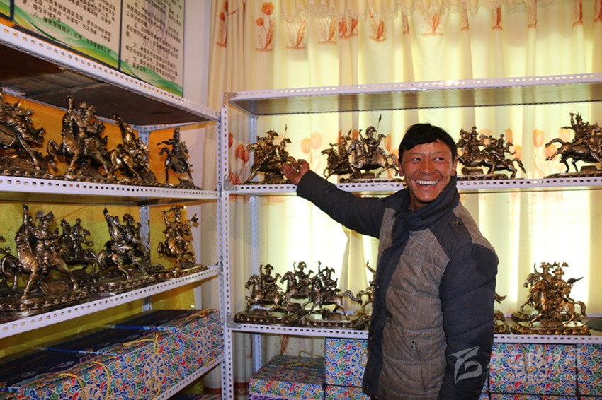 “東讓燃谷”藏文化傳統(tǒng)手工藝品制作合作社泥塑師白瑪俄日說,在精準脫貧中,茶扎鄉(xiāng)通過傳承格薩爾文化手工藝,研發(fā)了具有格薩爾文化元素的文化產品。
