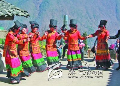 在磨西的青崗坪村,在被冰雪覆蓋的山巒眺望著的村莊,春節(jié)來(lái)臨的日子,彝家 兒女打開(kāi)了彝家的美酒,燦爛的陽(yáng)光搖曳濃烈的酒香,穿上紅紅的彝家服裝,彝家的女兒手拉手跳起舞。