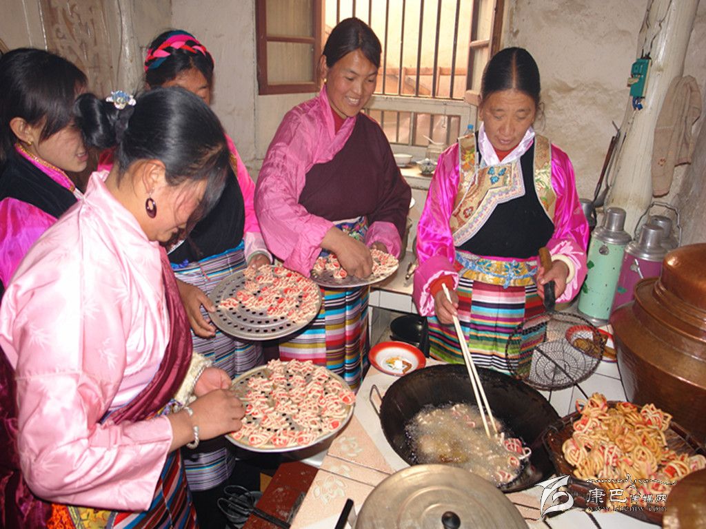巴塘人過春節(jié)很講究,除保持了漢民族春節(jié)特有的習(xí)俗外,獨特的地方飲食文化在藏區(qū)獨樹一幟,別具風(fēng)味。由于巴塘是一個以盛產(chǎn)小麥為主的農(nóng)業(yè)縣,所以面食為巴塘主食。勤勞的巴塘人用面食創(chuàng)造出了美味可口、品種繁多的地方小吃。