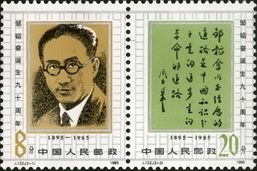 記者是一個承載著光榮與夢想的職業(yè),又是充滿挑戰(zhàn)、需要激情、不怕艱辛、固守責(zé)任的行業(yè)。在我國發(fā)行的人物類郵票中,一些堪稱中國紅色記者的人物曾多次出現(xiàn)在方寸之中,其中,最具代表性的是1985年11月5日,原郵電部發(fā)行的J122《鄒韜奮誕生90周年》紀(jì)念郵票。該套郵票共2枚,第一枚為鄒韜奮畫像,第二枚是周恩來的題詞。兩枚郵票采用橫連票設(shè)計,背景為文稿稿紙,主題鮮明,寓意深刻。