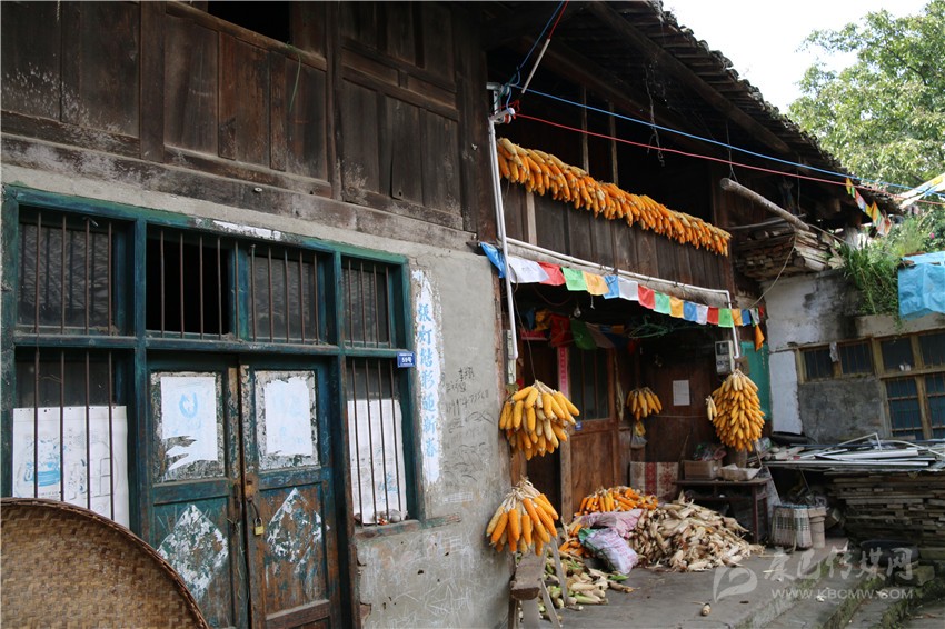 “這算是原生態(tài)的土司房了”,穿過小道,董老指著一間木板房;“是的,不過它的危險系數(shù)很高。”余華應(yīng)道。近看,門窗屋檐做工精細,散發(fā)著古樸感,但也不難發(fā)現(xiàn)屋身的“補丁”;后退兩步觀望,整個屋身稍傾斜,是典型的危房。繼續(xù)行走,是泥土和木板結(jié)構(gòu)的房屋,這也是上衙門遺址最后一站。據(jù)董老講述,這里是土司老爺審人的地方,犯人就跪在門坎的大石階上。不過,金黃玉米與鋼筋門窗的出現(xiàn),很難讓人想象土司老爺在該地審案的景象。