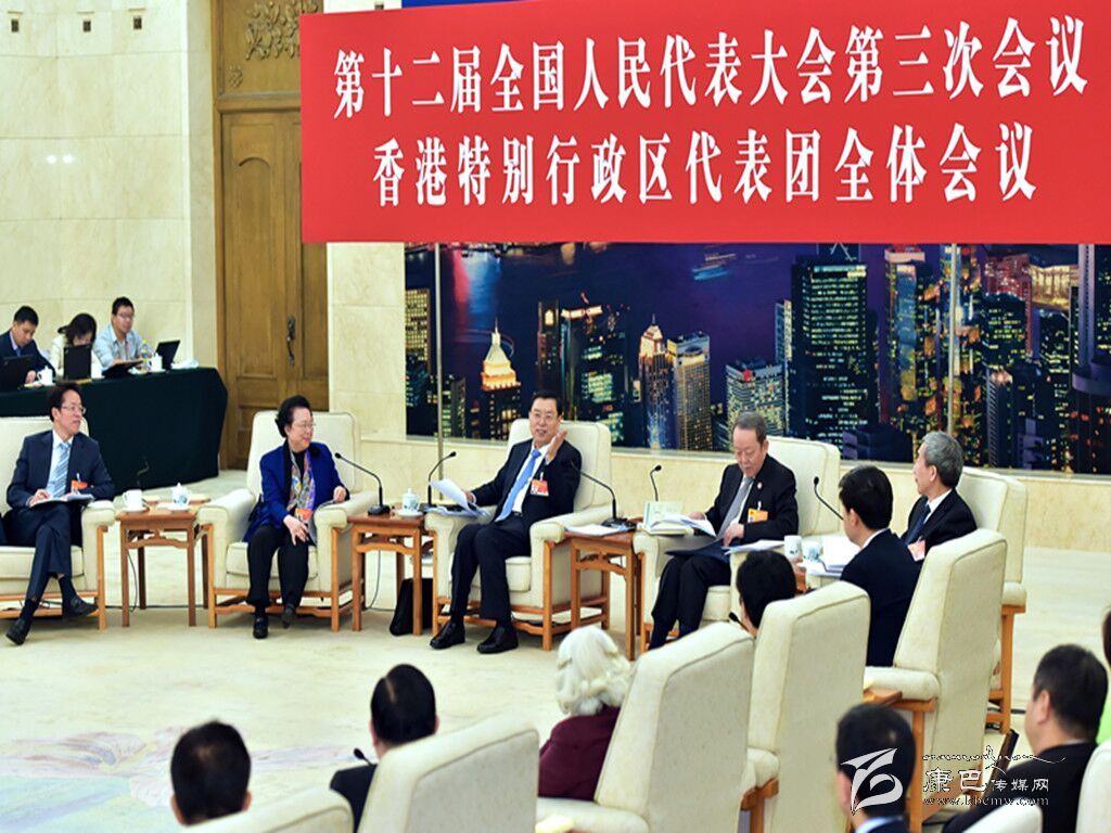 3月6日,中共中央政治局常委、全國人大常委會委員長張德江參加十二屆全國人大三次會議香港代表團(tuán)的審議。 新華社記者 李濤 攝