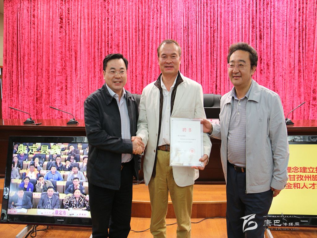 州領(lǐng)導(dǎo)向陳可石頒發(fā)聘書(shū)。