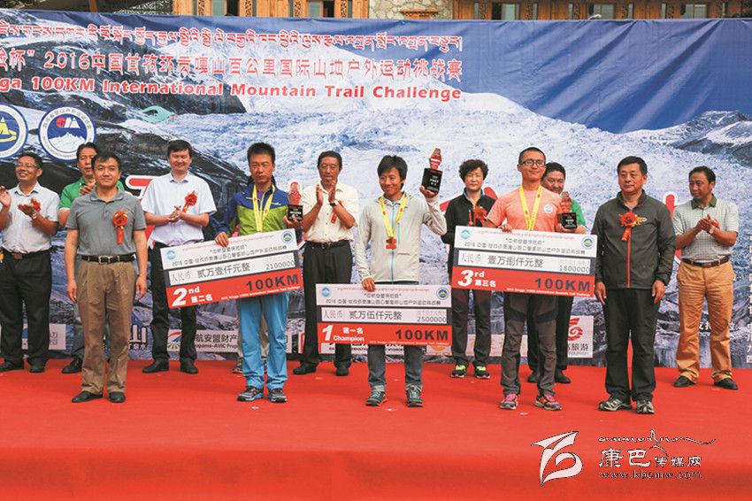 27日凌晨5時,參賽選手從康定情歌廣場出發(fā)后,運(yùn)動員們不畏艱險,你追我趕,各顯神通,拼盡全力,最終完成了50公里和100公里的賽程。經(jīng)過激烈的角逐,實力強(qiáng)勁的運(yùn)艷橋以13小時零48秒的成績將男子組100公里冠軍獎牌收入囊中,姚妙以14小時39分32秒的成績獲得女子組100公里冠軍;50公里男子組、女子組冠軍分別被明定邦和牛麗華摘取,成績分別是5小時38分12秒和6小時58分38秒。閉幕式現(xiàn)場,賽事組委會為獲得各項賽事前三名的選手頒發(fā)了獎金、獎杯與獎牌。