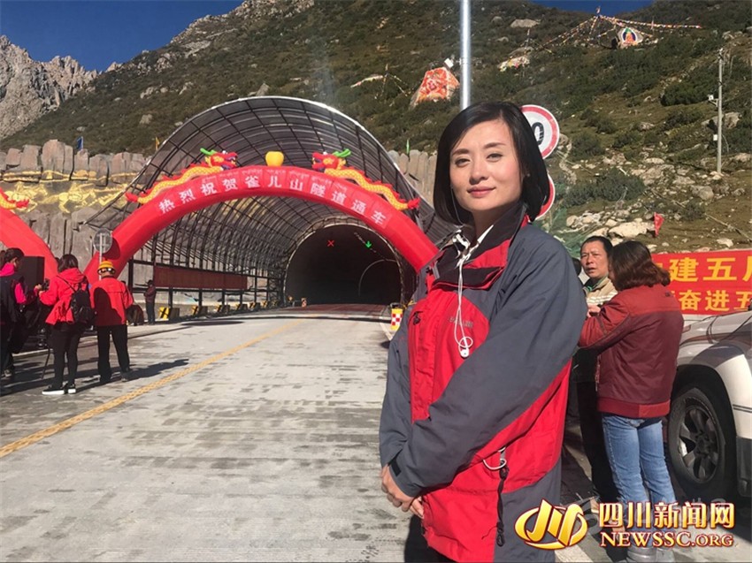 四川電視臺(tái)記者祝莉娟從雀兒山隧道通車現(xiàn)場(chǎng)為中央電視臺(tái)新聞?lì)l道《還看今朝·四川篇》發(fā)回直播報(bào)道