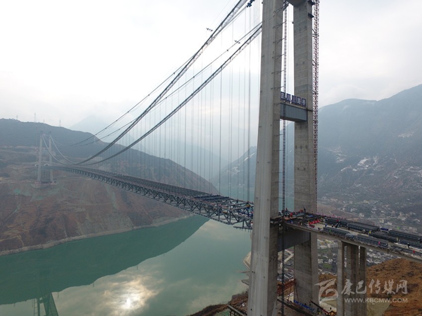 “大橋鋼桁梁完成合龍,標(biāo)志著大橋全面進(jìn)入橋面施工階段,也標(biāo)志著這座建設(shè)在高海拔、高地震烈度帶、復(fù)雜風(fēng)場(chǎng)環(huán)境下的超大跨徑鋼桁梁懸索橋,施工中最難、風(fēng)險(xiǎn)最大的施工全面完工。”雅康高速項(xiàng)目部副經(jīng)理柏國(guó)勝激動(dòng)地說(shuō)。