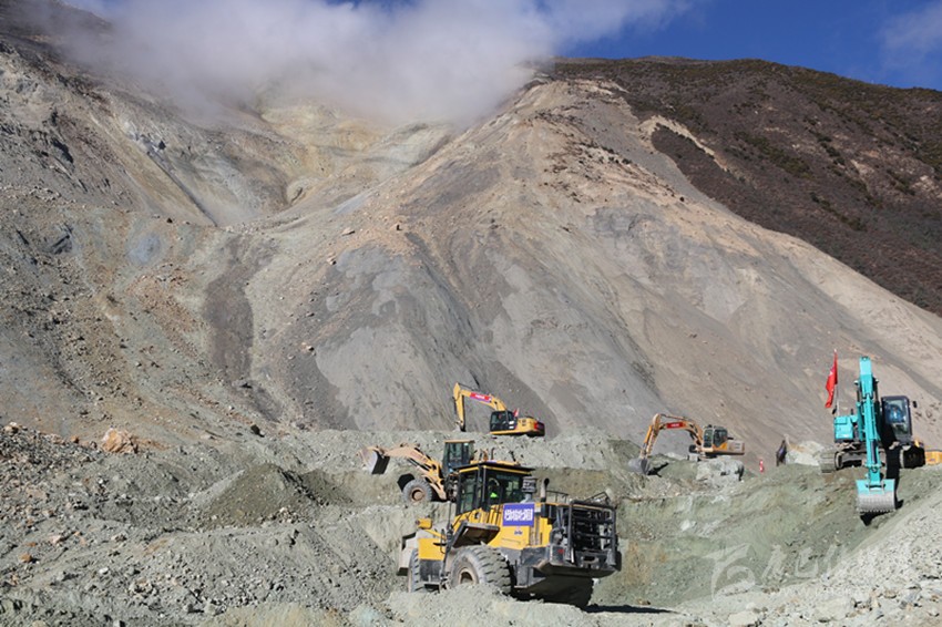 11月7日,又有7臺(tái)挖掘機(jī)抵達(dá)則巴村。當(dāng)天中午,道路開(kāi)辟工作開(kāi)始全面推進(jìn)。人輪班機(jī)器不休息,經(jīng)過(guò)半天一夜的不間斷施工,終于在8日8時(shí)過(guò)將通往江邊的7.5公里通道打通。挖掘機(jī)繼續(xù)沿著相對(duì)平坦的河床向上,開(kāi)辟通往堰塞體壩頂?shù)牡缆贰?日下午2時(shí)28分,來(lái)自水電五局的挖機(jī)手趙明喜將第一臺(tái)挖掘機(jī)成功開(kāi)上壩頂,比預(yù)計(jì)時(shí)間提前18個(gè)小時(shí)?!斑@個(gè)時(shí)間點(diǎn)我記得很清楚,這提前的18個(gè)小時(shí)給后續(xù)搶險(xiǎn)救援騰出了寶貴的時(shí)間?!笔?yīng)急管理廳副廳長(zhǎng)毛德忠說(shuō)。