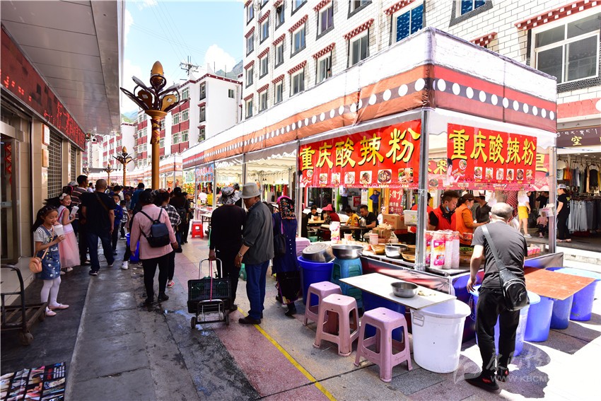 本網(wǎng)訊 5月18日,2019四川甘孜山地旅游文化節(jié)——圣潔甘孜美食匯暨農(nóng)特產(chǎn)品展銷會在丹巴拉開序幕。獨(dú)具特色的香豬腿、藏香豬肉、酸菜包子、血腸、火燒饃饃等丹巴本土美食,還有以野山花蜂蜜、牛肉干、花椒油、核桃、豆類、高山大蒜等為主的本土農(nóng)特產(chǎn)品和刺繡、圍巾、藏飾、藏服等嘉絨手工藝品“齊聚”丹巴縣步行街,引得眾多游客“移不開步子”。