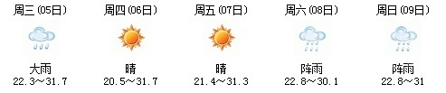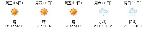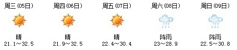 雖然明天太陽(yáng)有點(diǎn)兇,但7日、8日、9日三天陣雨及時(shí)出現(xiàn),日最高氣溫穩(wěn)定在30℃附近。