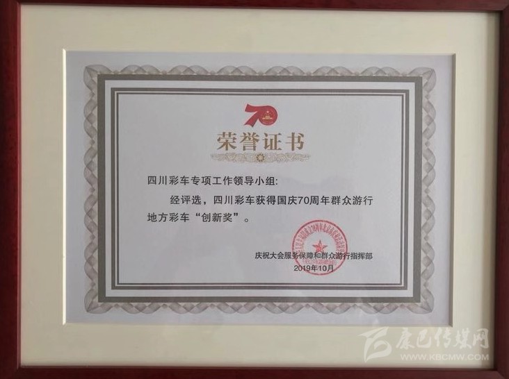 本網(wǎng)訊(楊藝茂)10月9日,記者從省文化和旅游廳獲悉,經(jīng)慶祝大會服務(wù)保障和群眾游行指揮部評選,四川彩車專項工作領(lǐng)導(dǎo)小組榮獲國慶70周年群眾游行地方彩車“創(chuàng)新獎”。