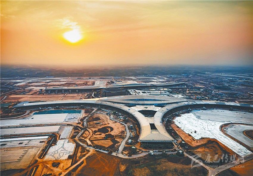 俯瞰晨曦中的成都天府國際機(jī)場施工現(xiàn)場。成都天府國際機(jī)場各項(xiàng)工程自全面復(fù)工以來,在嚴(yán)格防疫的基礎(chǔ)上,力搶工期,加快建設(shè)。