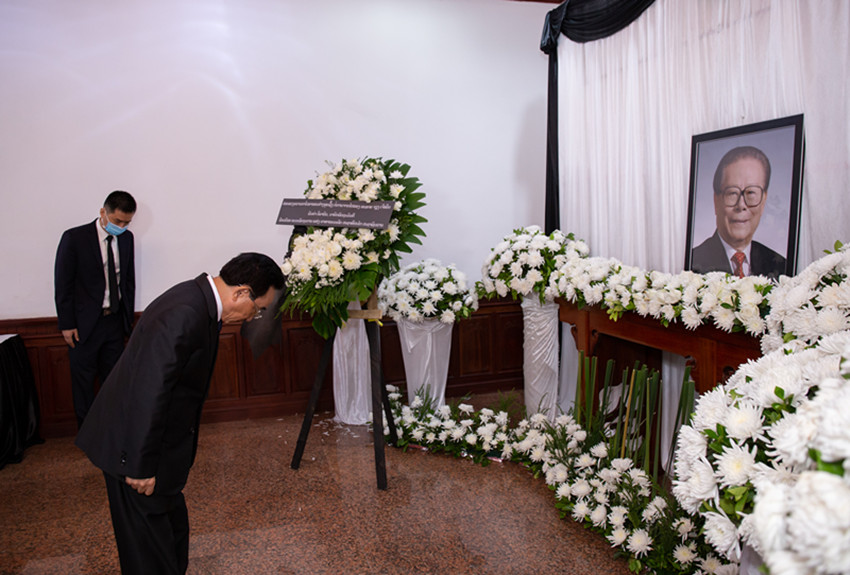 12月5日,老撾總理潘坎在中國(guó)駐老撾大使館吊唁江澤民同志。 凱喬 攝(新華社 發(fā))
