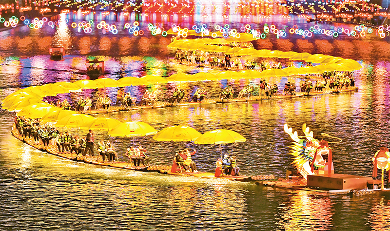 我國(guó)堅(jiān)持把恢復(fù)擴(kuò)大消費(fèi)擺在優(yōu)先位置,相繼出臺(tái)一系列促消費(fèi)政策,消費(fèi)市場(chǎng)恢復(fù)向好,消費(fèi)的基礎(chǔ)性作用更加顯著。圖為2024年2月11日,游客在湖北省恩施土家族苗族自治州宣恩縣城貢水河休閑賞夜景。 新華社發(fā) 宋文/攝