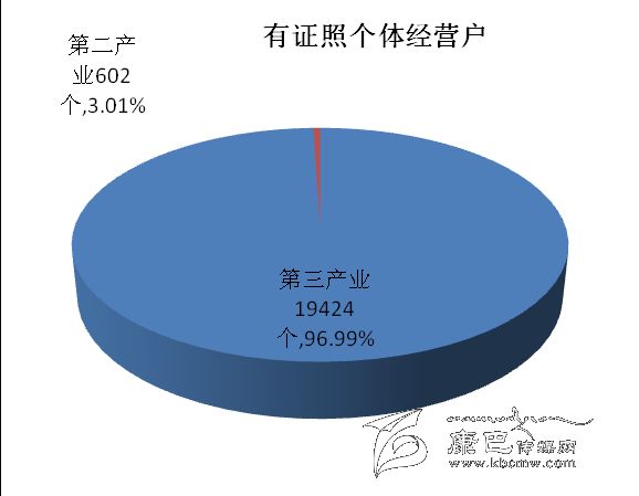 在有證照個(gè)體經(jīng)營(yíng)戶中,第二產(chǎn)業(yè)占3.01 %;第三產(chǎn)業(yè)占96.99 %。有證照個(gè)體經(jīng)營(yíng)戶從業(yè)人員中,第二產(chǎn)業(yè)占3.82 %,第三產(chǎn)業(yè)占96.18 %。