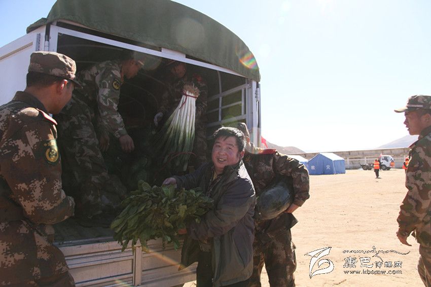本網(wǎng)訊(張璟文/圖)“王老板怎么你也來(lái)災(zāi)區(qū)了?”矮胖的王曉平回過(guò)頭手上拿著一大把白菜笑著答道:“災(zāi)區(qū)的群眾更需要新鮮的蔬菜瓜果,現(xiàn)就免費(fèi)送上價(jià)值7000多元的蔬菜瓜果、肉食品。”