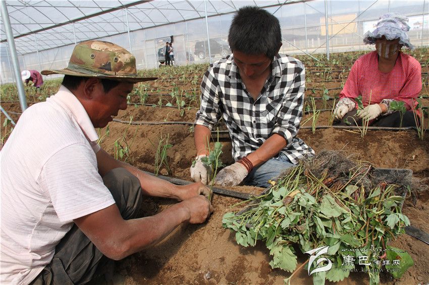本網(wǎng)訊( 葉強平 文/圖)5月16日,在海拔4000多米的理塘縣濯桑鄉(xiāng)漢戈村圣地農(nóng)莊大棚里,20多名農(nóng)場工人正在壟上種植草莓苗。據(jù)悉,去年圣地農(nóng)莊引進15個草莓品種在大棚里試種3畝,其中5個品種試種成功。今年,農(nóng)莊擴大種植規(guī)模,22個大棚種植40畝。新蓋的大棚可以開進拖拉機,采用一站式機械化操作,比人工操作效率提高了6倍。