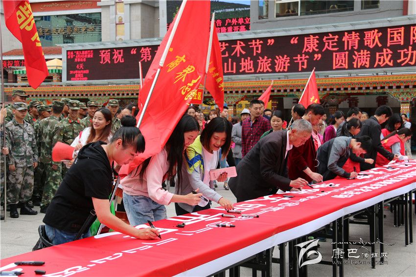 本網(wǎng)訊(記者 宋志勇 文/圖)8月5日,由州文明辦、州直工委、康定市文明辦共同舉行的康定地區(qū)迎“康巴藝術(shù)節(jié)”爭當(dāng)文明市民簽名暨志愿服務(wù)活動(dòng)在情歌廣場(chǎng)正式拉開帷幕。來自康定地區(qū)社會(huì)各界的青年志愿者服務(wù)隊(duì)、巾幗志愿者服務(wù)隊(duì)、工商界志愿者服務(wù)隊(duì)、衛(wèi)生系統(tǒng)志愿者、駐康部隊(duì)志愿者服務(wù)隊(duì)、州級(jí)機(jī)關(guān)志愿者服務(wù)隊(duì)、市直機(jī)關(guān)志愿者服務(wù)隊(duì)、環(huán)衛(wèi)志愿者服務(wù)隊(duì)等共計(jì)1000余人參與。