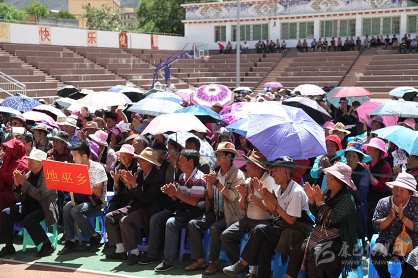 烈日炎炎,然而,比氣溫更高的是群眾的熱度。中午1點(diǎn)過,夏邛鎮(zhèn)、竹巴龍鄉(xiāng)、地巫鄉(xiāng)、康寧寺的機(jī)關(guān)干部、群眾、僧侶們便陸續(xù)走進(jìn)體育中心。