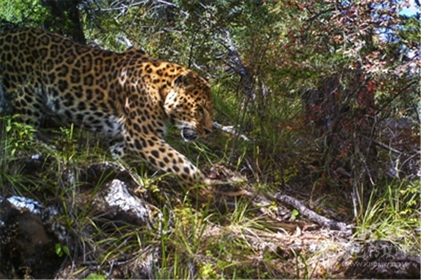 2016年11月7日5時(shí)03分,天還沒亮?xí)r,相機(jī)拍到了豹子的行蹤。