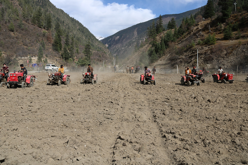 本網(wǎng)訊(新龍縣委中心報道組 楊雪濤 攝影報道)4月16日,新龍縣大蓋鎮(zhèn)竹青村春耕備耕生產(chǎn)正有條不紊的進行中。村民們有的忙著撒種子,有的忙著開拖拉機耕地,有的忙著兌種子……田間地頭一片繁忙的景象。 據(jù)悉,為確保春耕備耕生產(chǎn)工作有序開展,縣農(nóng)牧科技局已向全縣各鄉(xiāng)鎮(zhèn)累計發(fā)放各類種子314070余斤,電動石磨28臺,微耕機250臺,各種肥料3140袋,為該縣春耕生產(chǎn)工作奠定了堅實的基礎(chǔ)。截至目前,該縣春耕播種面積已達(dá)5.13 萬畝,全縣春播已完成40%。