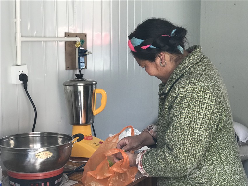 仁青卓瑪一家共四口人,分得農(nóng)戶四人房?!拔覜]想過板房條件可以這么好,有電有水,還有單獨(dú)干凈的廁所,對(duì)面就是洗澡的地方,在有些地方甚至比以前住的房屋更便利?!彼呎f邊用抹布擦著灶臺(tái)上的油漬,“這里也是家啊,還是要收拾得干干凈凈的,新家新氣象嘛。”直到筆者離開,卓瑪還在自家的板房里忙碌著。