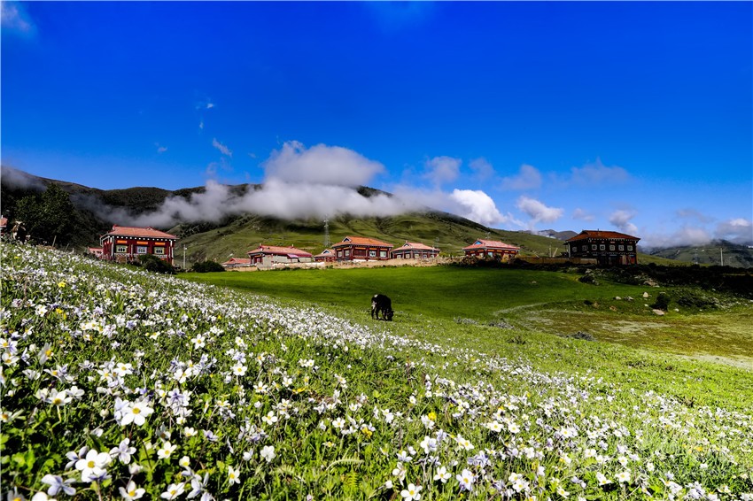 “鄉(xiāng)干部安排我負責(zé)管理度假村,我當(dāng)即承諾,度假村是我們一手培育起來的產(chǎn)業(yè),就像我們的孩子,我們要精心呵護它健康成長。我們修建了特色住宿,完成生態(tài)廁所、停車場等配套基礎(chǔ)設(shè)施,拓展騎馬、射箭、土特產(chǎn)銷售等業(yè)務(wù),同時借助幫扶單位樂山職業(yè)技術(shù)學(xué)院的力量,有信心把度假村打造成一流的牧旅融合休閑旅游目的地,宗塔草原這片七色花海將會為群帶來七彩生活?!贝迕竦莱隽藢Χ燃俅宓钠谕?/p>