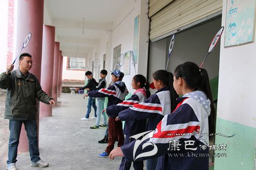 關軼為校羽毛球隊做現(xiàn)場輔導。