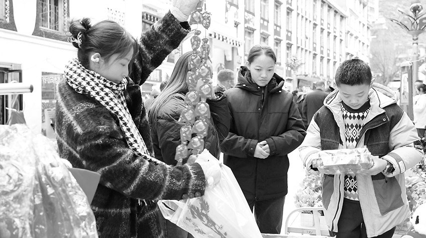 一進(jìn)入臘月,年的味道越來越濃,丹巴縣家家戶戶采辦年貨的熱情也逐漸高漲,所有商店和集貿(mào)市場(chǎng)人頭攢動(dòng),開始熱鬧起來。人們忙著選購各種商品,迎接新年的到來。
