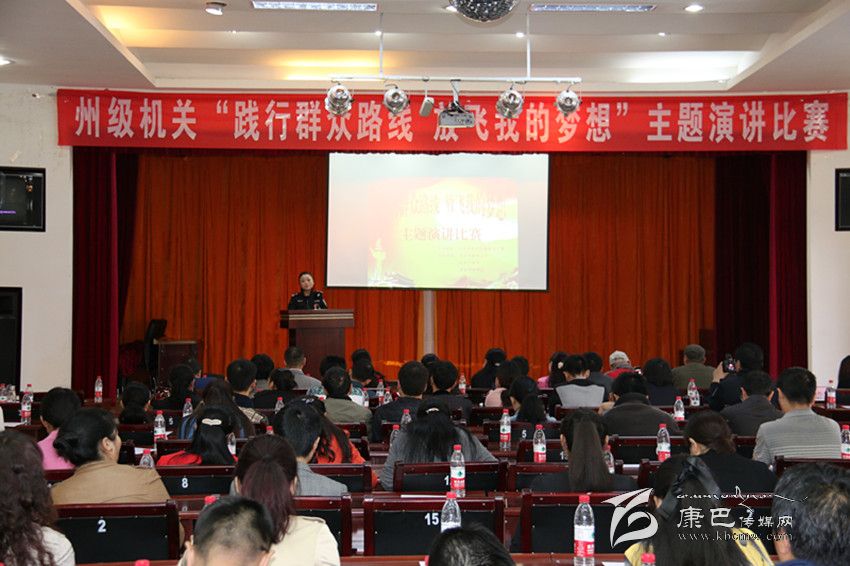 9月11日,州直屬機(jī)關(guān)工委主辦了“踐行群眾路線 ,放飛我的夢想”主題演講比賽,18名來自州級機(jī)關(guān)的黨員干部展開了激烈角逐。選手們聲情并茂地講述了一個個感人至深的故事。民干校的選手用關(guān)愛學(xué)生的生動事例,展現(xiàn)了共產(chǎn)黨員的宗旨和使命;州特警隊選手講述了自己和戰(zhàn)友立足崗位、踐行群眾路線的動人故事;州人社局的選手講述了用真情為群眾奉獻(xiàn)自己一份微薄力量……一個個生動的故事,感染了現(xiàn)場的每一位觀眾。圖為演講比賽現(xiàn)場。