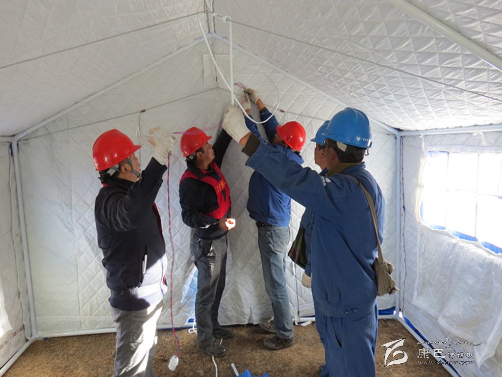 奪拉二村有4個(gè)變壓器臺(tái)區(qū),其中2個(gè)臺(tái)區(qū)為人員較多的木雅祖慶學(xué)校,地震使學(xué)校住宿樓變?yōu)槲7?,全校?000名學(xué)生轉(zhuǎn)移至學(xué)??盏厣系陌仓命c(diǎn)。為了讓安置點(diǎn)內(nèi)的受災(zāi)師生和應(yīng)急指揮中心盡快用上電,黨員突擊搶險(xiǎn)小分隊(duì)不僅要在安置點(diǎn)迅速安裝應(yīng)急照明設(shè)施,同時(shí)還要從圍墻和學(xué)校食堂的樓頂上重新布放近3段2公里長(zhǎng)的臨時(shí)電源線。學(xué)校圍墻因地震而搖搖欲墜,稍微用點(diǎn)力,墻、磚塊或水泥就會(huì)掉下來(lái),面臨這一難題,公司黨總支沉著應(yīng)對(duì),迅速組織塔公供電所與新都橋供電所的黨員干部趕往震中,同時(shí)安排其余供電所的黨員干部迅速增援。先期到達(dá)的救援人員在余震不斷發(fā)生的情況下,對(duì)受損供電設(shè)備及線路進(jìn)行了緊急處理;在后期人員趕到后,公司黨總支迅速研究制定工作方案,科學(xué)分工:第一組黨員突擊搶險(xiǎn)隊(duì)負(fù)責(zé)隱患排查,第二組黨員突擊搶險(xiǎn)隊(duì)負(fù)責(zé)電線布放,第三組黨員突擊搶險(xiǎn)隊(duì)負(fù)責(zé)救災(zāi)帳篷的照明安裝。在三個(gè)小組隊(duì)員的共同努力下,用近三個(gè)小時(shí)的時(shí)間就解決了應(yīng)急指揮中心、醫(yī)療隊(duì)和臨時(shí)安置點(diǎn)的照明安裝這一難題。