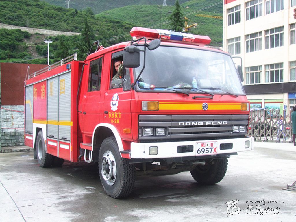 消防車(chē)在考場(chǎng)外待命。