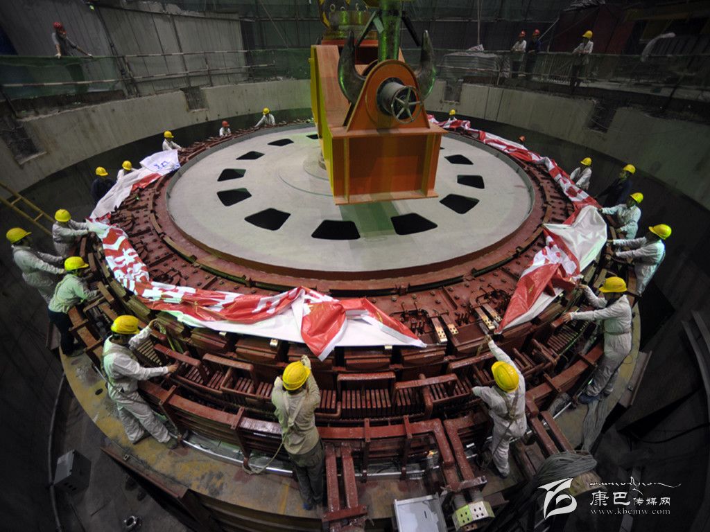 該轉(zhuǎn)子直徑為12.39米,高2.23米,重577噸,總吊裝重量620噸,是黃金坪水電站機電安裝工程中單件吊裝重量最大的設(shè)備。該轉(zhuǎn)子由東方電機有限公司制造。該轉(zhuǎn)子的順利就位,為該電站2號機組10月底投產(chǎn)發(fā)電創(chuàng)造了條件。