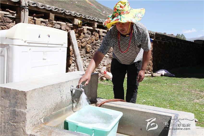 這是一幢位于半山坡上的漂亮藏房,這是一座寬敞干凈的農(nóng)家院落。正在院子里的水龍頭前洗衣服的布窮拉,一面羞紅著臉招呼著我們,一面將洗衣粉撒進(jìn)洗衣機(jī)里,高速運(yùn)轉(zhuǎn)的洗衣機(jī)不時(shí)拋出幾朵洗衣粉泡沫。說(shuō)起自來(lái)水,不善言辭的布窮拉確實(shí)感觸尤深:“我家附近只住了4戶人家,根本就沒(méi)想過(guò)這輩子還能用上自來(lái)水。去年鄉(xiāng)上在實(shí)施第二批人口安全飲水工程項(xiàng)目時(shí),居然也把我們幾家規(guī)劃進(jìn)去了。當(dāng)時(shí),我以為只是說(shuō)說(shuō)而已,沒(méi)想到20來(lái)天后施工隊(duì)果真就把水管鋪設(shè)到了我家。通水那天,我們幾家人還特意慶祝了一盤。如今,我再也不用每天往返到色曲河背水了,我家的背水塑料桶隨之也就‘下崗’了。”